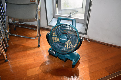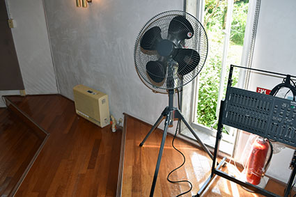換気扇は2台、サーキュレーター、工業用扇風機を用意しました。