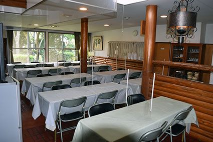 飛沫感染防止を目的として、食堂にアクリル板による仕切りを設置しております。